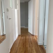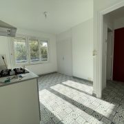Il se compose d’une entrée en couloir qui dessert un séjour, un w-c séparé, une cuisine aménagée et équipée (plaque au gaz, hotte..) avec placard, 2 chambres et une salle d’eau avec receveur à l’italienne.
