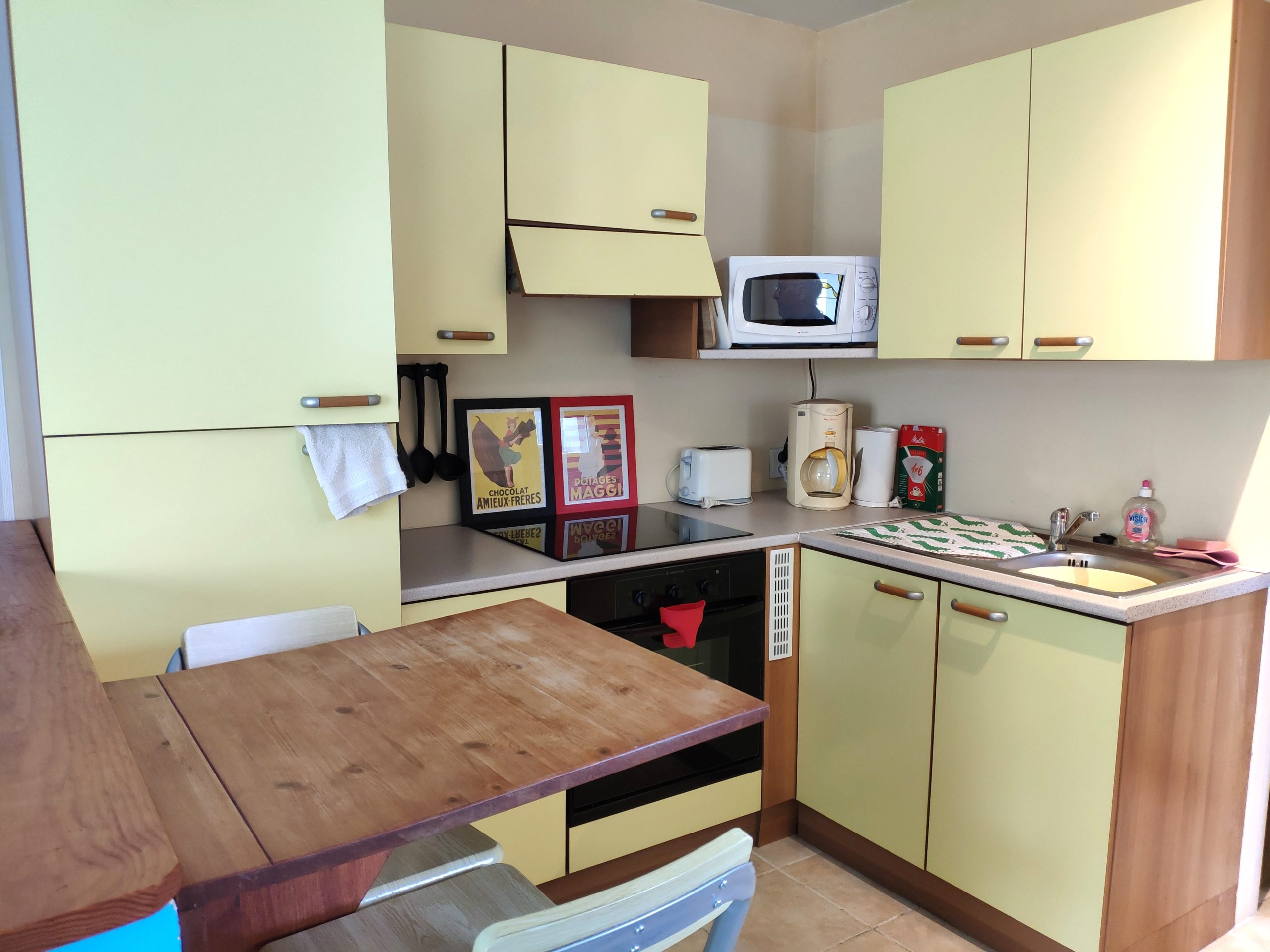 Vous rentrez directement dans la partie cuisine complètement équipée et aménagée.